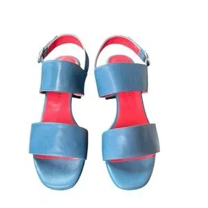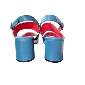 Pas de Rouge Blue and Pink Sandal Slingback Block Heels