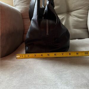 Elegant black leather tote. Spacious interior. Perfect for everyday use.