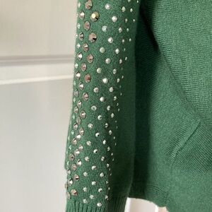 Adrienne Vittadini 2X green top with hood beads v-neck