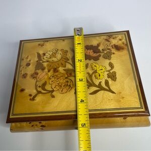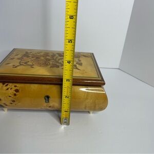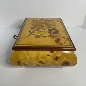 Vintage Reuge wooden Jewelry music box. Floral inlay, made in Italy. Plays Music Box Dancer. Swiss musical movement. Has key pre-owned. Great condition.