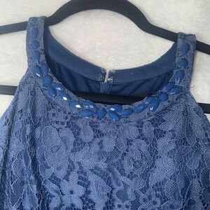Blue Jeweled Collar NWT Nine West Blue Lace Cocktail Dress size 16