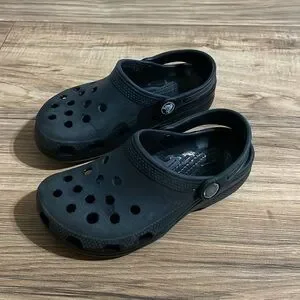 These CROCS water shoes in sleek black are designed for ultimate comfort and functionality. Made from the signature Croslite material, they offer quick drying and a lightweight feel. The perforated design ensures excellent ventilation, making them ideal for water activities.