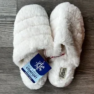 NWT Women’s Dluxe by Dearfoams Kaila Scuff Slippers - Ivory Large