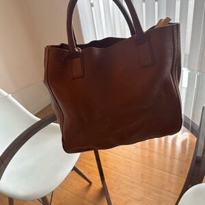 This elegant brown leather tote bag is perfect for any occasion. Its rich color and sleek design make it a versatile accessory for your wardrobe. Great condition.