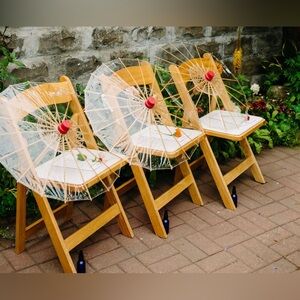 Purchased for my wedding which had rain. I have a set of 8 clear small umbrellas. The price is for each one. Open to offers for full set. Beautiful hand crafted wooden armature. Also adorably child sized