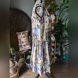 Vintage 100% Silk Geometric Pattern Dress Size L