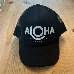 Classic trucker hat with ALOHA Collection logo. Mesh back for comfort.