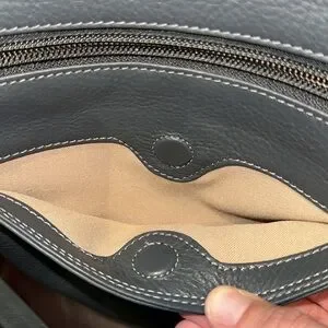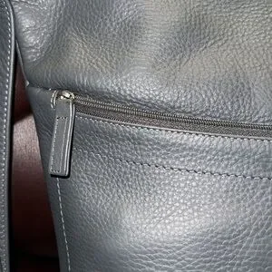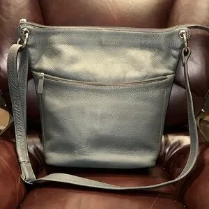 Gorgeous soft grey leather bucket bag from Derek Alexander. Timeless and elegant, with plenty of room and tons of pockets as shown!