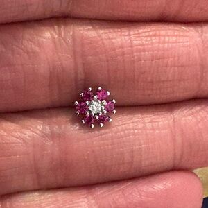 Nose Ring- 20G Red Nose Stud. Surgical Steel L Shaped, Red Stones & cz in a flower shape. Nose Ring CZ Nose Piercing nwt R25 Tray 64