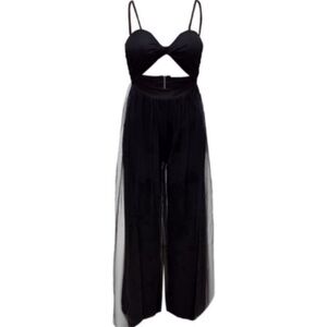 Step out in style with this elegant black wide leg jumpsuit. Perfect for any occasion, it offers a chic and sophisticated look. SIZE: XL