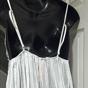 Experience the allure of delicate lace and satin-like fabrics with this Victoria's Secret chemise. The empire waist and babydoll silhouette create a romantic and ethereal look, perfect for special occasions. Strappy details and ribbon accents add a touch of elegance to this intimate piece.
