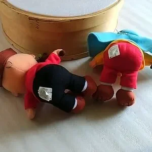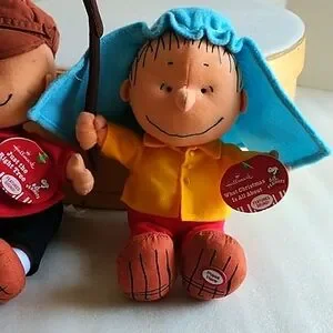 Delight your child with this adorable Peanuts plush toy set. Featuring vibrant red and yellow outfits, these toys are perfect for imaginative play. A must-have for any Peanuts fan. Hallmark, works as should. They talk. Measure approx 8" tall sitting. Pre-owned in good condition.