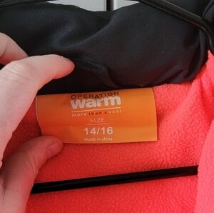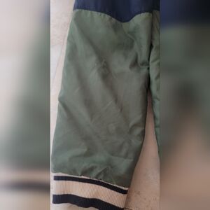 The green jacket is labeled as a kids large and has 2 pockets and a snap up front. It is completely in good order as a jacket but visually has some stains and wear spots so this is more of a playground/school jacket if appearances matter.