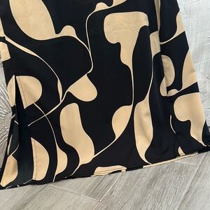 This stylish skirt features a striking black and cream pattern, perfect for any occasion. Its elegant design offers a sophisticated look.