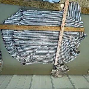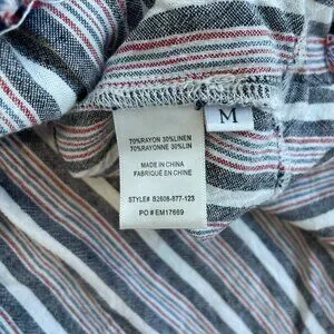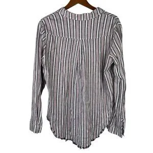 Cloth Stone Shirt Size Medium Striped Raw Hem Button Up Linen Blend Long Sleeve