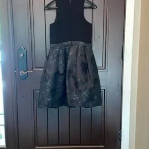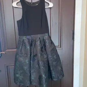 This Crepe and Jacquard Fit & Flare Cocktail Dress by Aidan by Aidan Mattox features a fitted crewneck bodice with racerback and a pleated flare knee length skirt. It has an invisible zip at the back, pockets and lined.