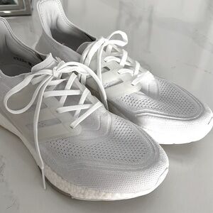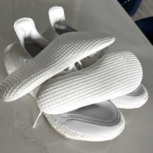 Primeblue Ecco friendly, convenient slip-on sneakers by adidas. Made from ocean plastic! Barely worn, ultra light & breathable, cushy insoles make them feel like walking on clouds. Ultraboost soles, Bright white, in fantastic condition, no flaws! Men’s 10.5