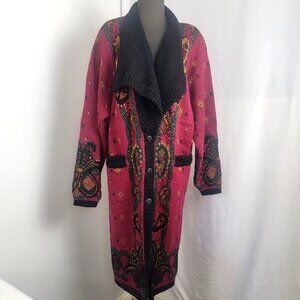 Cervelle Boho Cardigan Sweater Coat Button Up Front Vintage XL Maroon Gold Green
