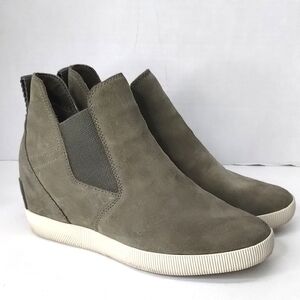 Sorel Out N About Wedge Slip On 9.5 Suede Sage Taupe