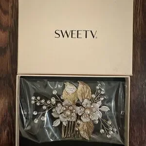 This exquisite hair accessory showcases a vintage-inspired design with delicate gold floral elements and pearl-like beads. Perfect for styling on special occasions, it adds an elegant touch to any hairstyle.