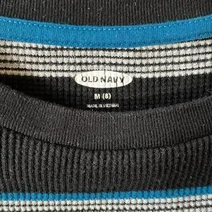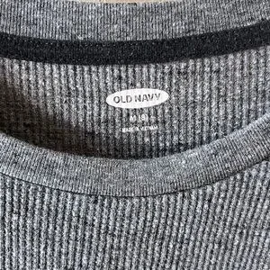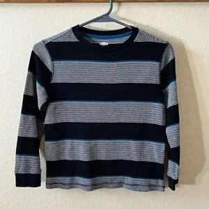 These Old Navy long sleeve tees feature a classic crew neckline and bold black and gray stripes, perfect for casual outings. Crafted for comfort and style, they offer a versatile addition to any wardrobe. Ideal for layering or wearing on their own, these tees are a must-have for any season.