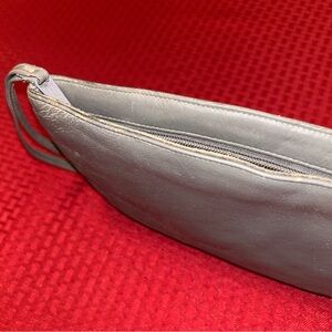 Vintage 1970s Etienne Aigner Large Wristlet Clutch Purse Gray Leather