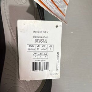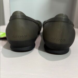 Experience the perfect blend of comfort and style with these black flats from CROCS. Designed with a sleek, minimalist look, these shoes are ideal for both casual and business settings. The pointed toe and low-cut vamp add a touch of elegance to your everyday ensemble. NWT. Does have a couple white specs as shown in pics. From a smoke free and pet friendly home.
