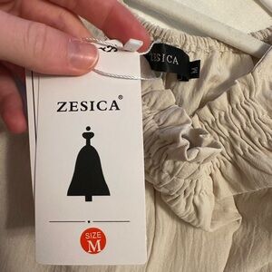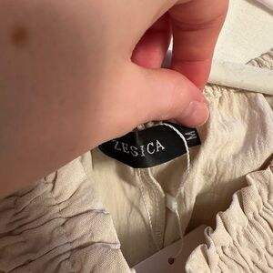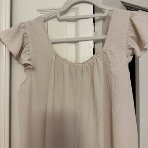 Elegant cream jumpsuit with ruffled sleeves. Perfect for any occasion.
