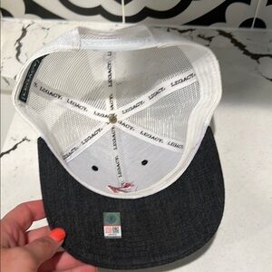 This Legacy cap features striking black and white accents, highlighted by the iconic University of Alabama 'A' logo. The bold design showcases the brand's commitment to quality and style, making it a standout piece for any collection. Some minimal signs of wear on inside rim- has been washed.