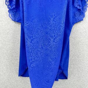 VTG Val Mode Nightgown 2X Purple Floral Lace Short Sleeve Button Front Lingerie