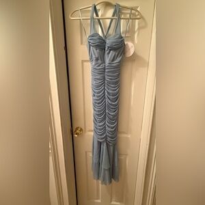Selfie Leslie Blue Bodycon Midi Dress Sweetheart Neckline