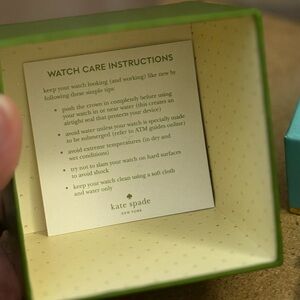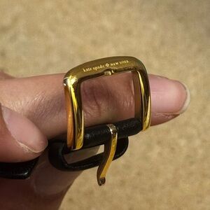 Kate Spade Red Cherry Metro Black Leather Women’s Ladies Watch. KSW1343. Good used condition. Brand new battery. Genuine leather band. There’s a tiny rust on the case back, but I believe it can be easily removed. Small, normal wear on the straps. Please see pictures. No extra holes. Comes with the box and care card.