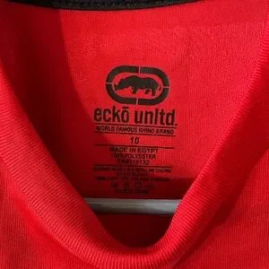Bold red Ecko Unlimited t-shirt with iconic logo. Ideal for everyday style.