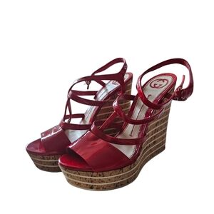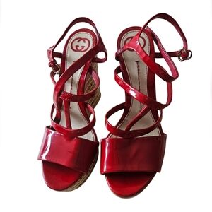 Gucci Red Pattent Leather Strappy Wedge Sandals