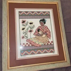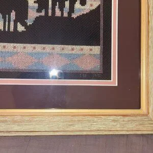 Native American Southwest Needle Point Cross Stitch Framed And Matted Set of 2