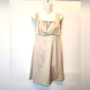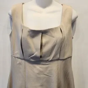 New Olivia Mathews Beige A-Line Dress Square Neck Minimalist Modest Sundress 6P