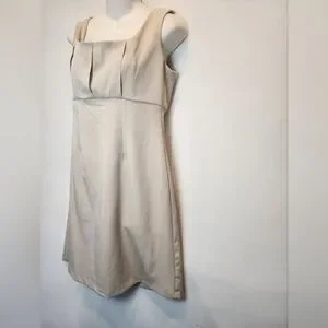 Timeless vintage style beige A-line dress featuring a flattering square neckline, wide shoulder straps, and delicate pleated bust detail. New with tags. This minimalist 90s-inspired piece is perfect for cottagecore enthusiasts and those seeking a chic, versatile addition to their wardrobe. Ideal for brunches, garden parties, or casual outings. chest 18, waist 15, length 36. Size 6P