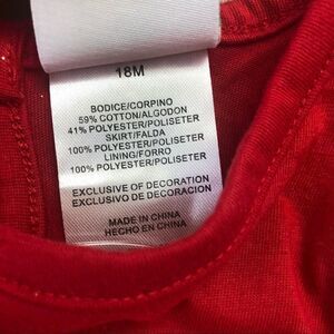 Color: Red Top with a gold sparkle ruffle tutu; leggings are green and white stripped
