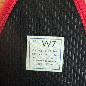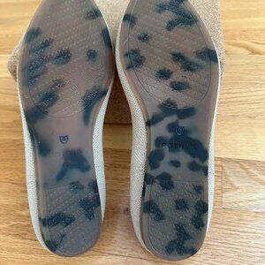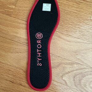 Rothy's Cardinal Red and Ecru Tan Flat Slip-on Shoes (2 pairs of shoes). Rothy's The Flat Women's Slip-On Shoes, Classic Flats, Made from Recycled Plastic Bottles & Machine Washable. The Flat is knit with Rothy's signature thread, which is made from 100% recycled plastic bottles. Wear, wash, love. It's so easy to wash Rothy's. Just slip out the insoles & pop the insoles & shoes right into the washing machine. Wash on cold with mild detergent & let air dry.. Rounded, slightly square toe. Excellent pre-owned condition. Only one pair of red insoles. Both shoes are size 7. Red shoes have a decorative detail on the back heels. Both shoes have a blue edge on the top of the back heels. Tan shoes have an ink spot like bottom soles which is how they are made. A little discoloration on the bottom soles, but minimal. Tan shoes have a few darker spots on the canvas. See the last picture. Both shoes are a size 7.