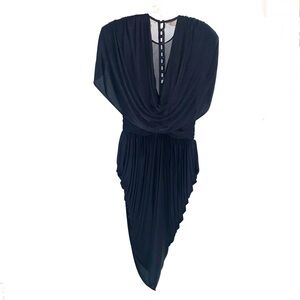 Climax Karen Okada For David Howard vintage black ruched dress with shoulder pads,sequins and beadwork.