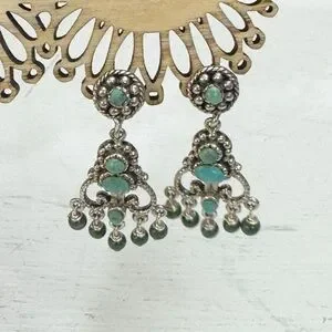 These elegant dangle earrings feature a stunning combination of silver and turquoise. Perfect for adding a touch of sophistication to any outfit.