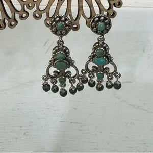 Vintage Elegant Sterling Silver and Turquoise Dangle Pirced Earrings
