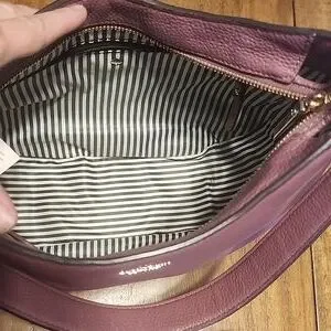 I recently purchased this bag and it is beautiful and in excellent condition. The reason I am reposhing is because I don’t like the way it hangs on my shoulder. Elegant mauve (purple ish-magenta) hobo bag. Pebbled leather. Signature Kate Spade logo.