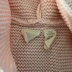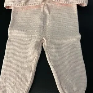 Adorable pink knit baby set with hoodie and pants. Perfect for keeping your little one cozy.