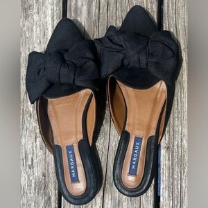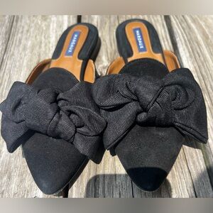 Margaux The Bow Mule, black suede & ribbon, size 38 but fits a 6.5 maybe a 7.