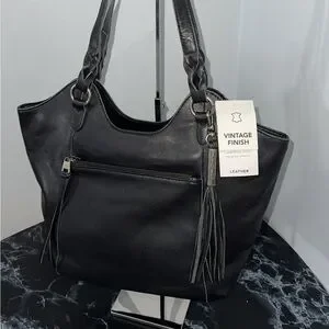 The Sak Handbag Sierra Leather Black Shopper Shoulder Bag AUTHENTIC NWT