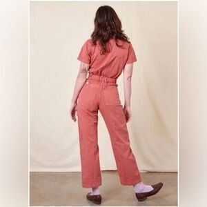 Big Bud Press Clay Red Short Sleeve Jumpsuit in unisex size M. The color is a little faded but not mottled like the last picture (that’s the lighting/camera). Most closely resembles the close up picture of the tag IRL. See bigbudpress.com for sizing info!