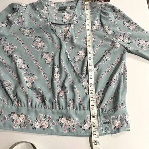 Elegant floral blouse in a beautiful teal color. Perfect for any occasion.