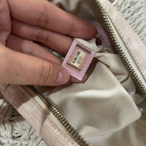 This Chanel crossbody bag features a luxurious quilted design in a soft pink hue, offering a chic and sophisticated look. The adjustable strap allows for versatile wear, making it perfect for both casual outings and elegant occasions. Its compact size is ideal for carrying your essentials in style. Can be used as a crossbody bag or around the waist. Please note stains around zipper and some areas of the bag. What you see is what you get , AUTHENTIC !