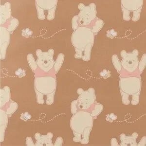 Charming Winnie the Pooh backpack. Cream and pink design. Features a smiling bear face. Front zip pocket included.